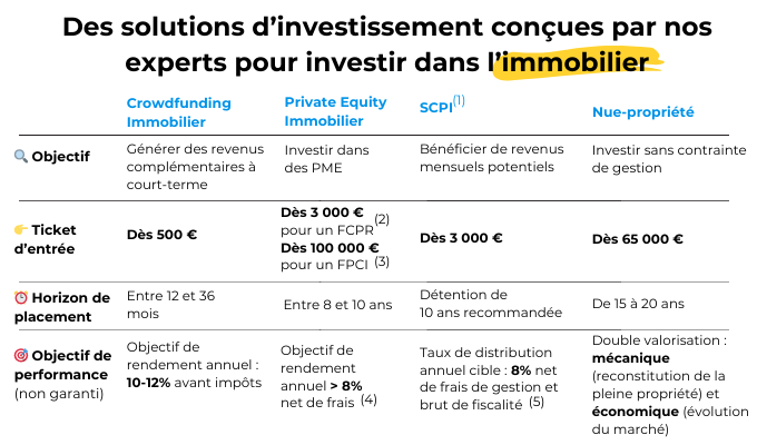 Le Private Equity immobilier permet de soutenir le développement d'entreprises avec une perspective de rendement supérieure à celle des placements traditionnels. Toutefois, ce type d'investissement présente des risques de liquidité et de perte en capital, avec une durée de blocage souvent comprise entre 5 et 10 ans.